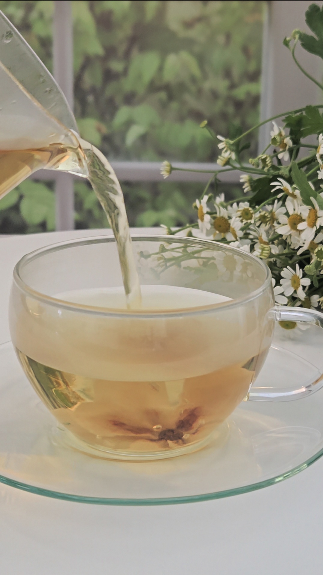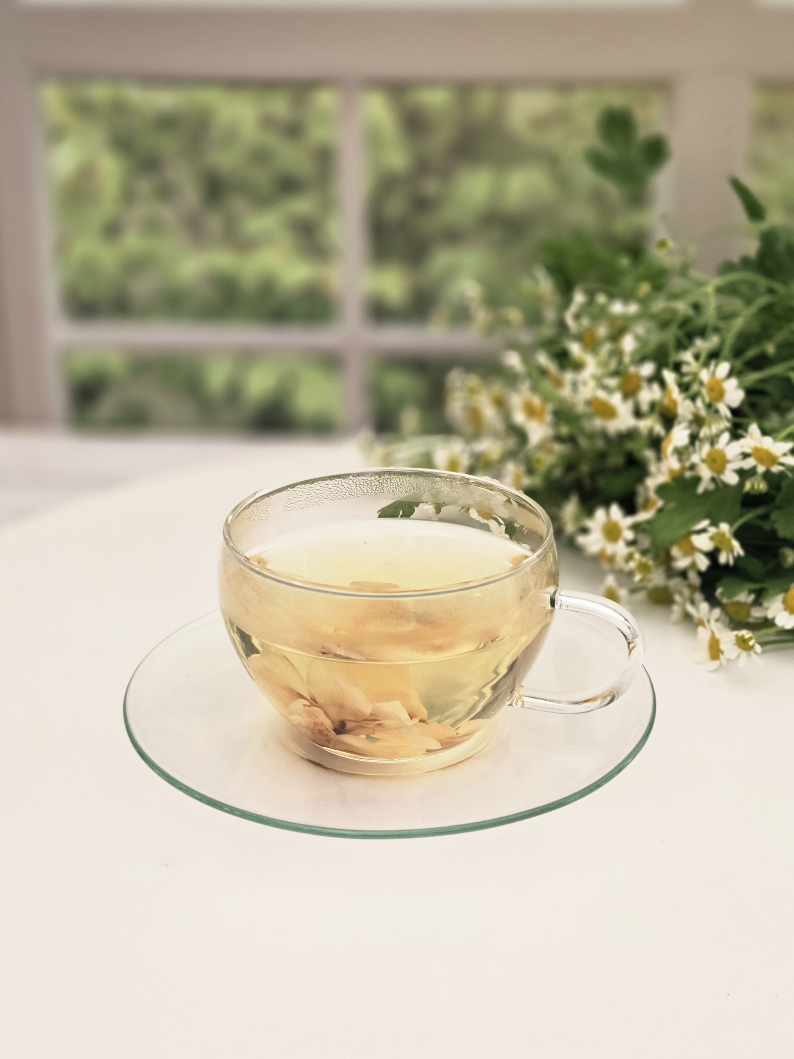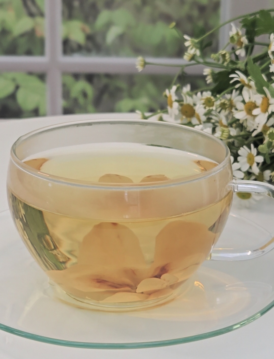 찻잔 속에 담긴 작은 꽃을 바라보며