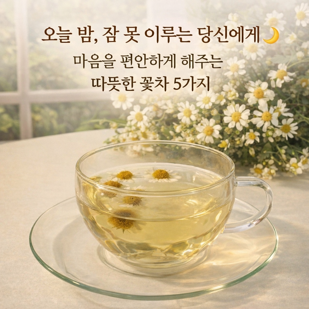 유난히 생각이 많아 잠이 오지 않는 밤이 있습니다. 억지로 잠을 청하기보다, 따뜻한 차 한 잔으로 몸과 마음의 긴장을 풀어주는 건 어떨까요? 오늘은 예쁜 색감과 향기로 지친 하루를 달래주고 숙면을 도와주는 '따뜻한 꽃차 5가지'를 소개해 드립니다.